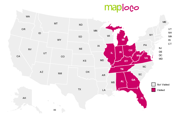 States I’ve Visited: Alabama, Florida, Georgia, Illinois, Indiana